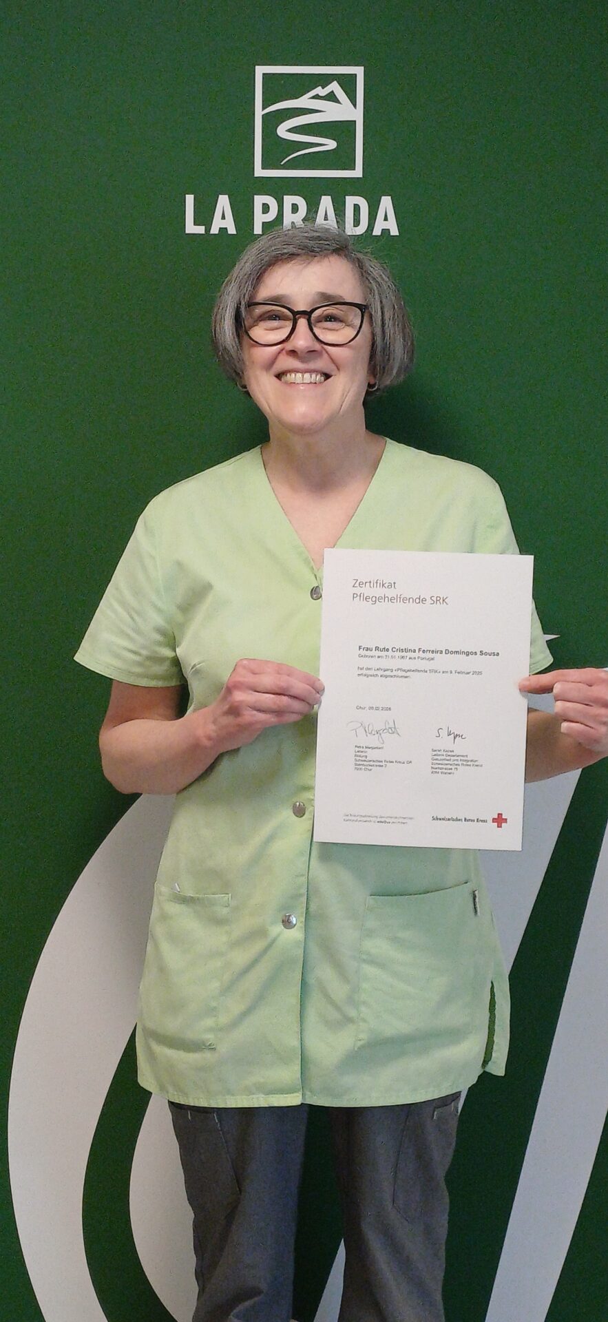 Wir haben einen Grund zum Feiern: Unsere Rute Sousa hat den Kurs „Pflegehelferin SRK“ mit Bravour bestanden! Das gesamte La Prada-Team, aber auch wir alle vom La Pumera, sind sehr stolz auf dich und freuen uns jeden Tag, mit dir zu arbeiten.